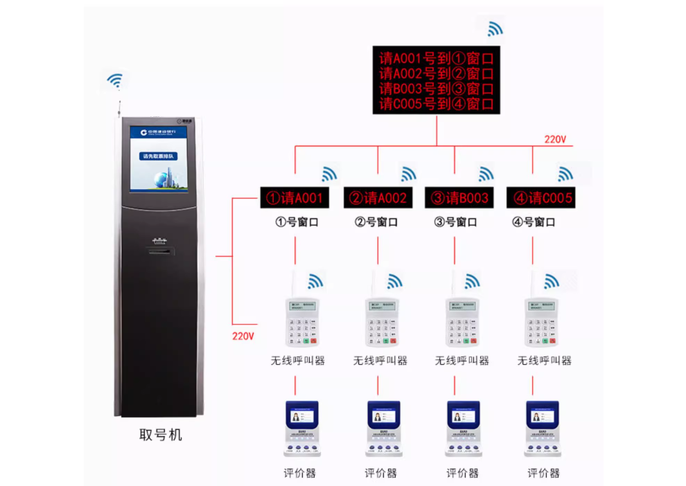 ③維護簡單:沒有分線盒、通信控制器、中繼器,沒有485總線拉死情況,取號機、叫號器,窗口屏都是一個獨立無線設備,不存在排查線路上的問題而煩惱,節省時間,減少維護成本